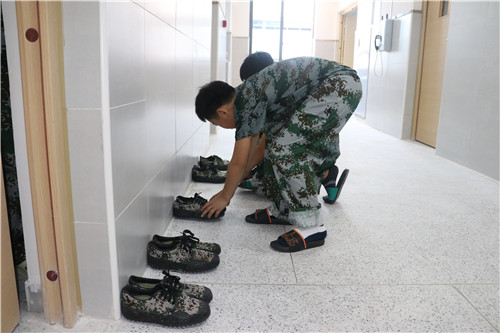 中午12点整,正副排长分别带领自己排的学生有序进入餐厅就餐,学生们听指挥、懂礼貌,极快进入状态。