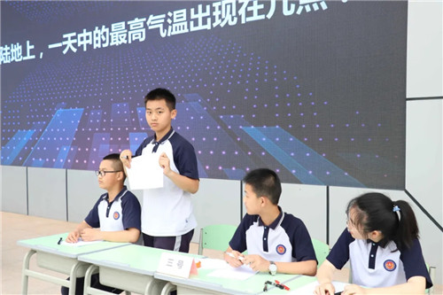 本次活动以班为单位进行,经过前期激烈而紧张的预赛之后,七年级4班、七年级7班、七年级8班三只代表队脱颖而出,分别夺得小组第一名,进入决赛,角逐冠亚季军。竞赛内容涉及中国共产党党史、地理、生物、历史等学科层面,题型分为必答题和抢答题。
